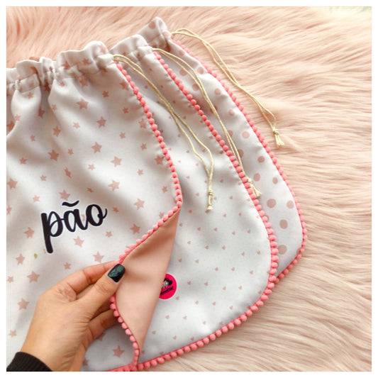 saco lanche/ roupa pompons