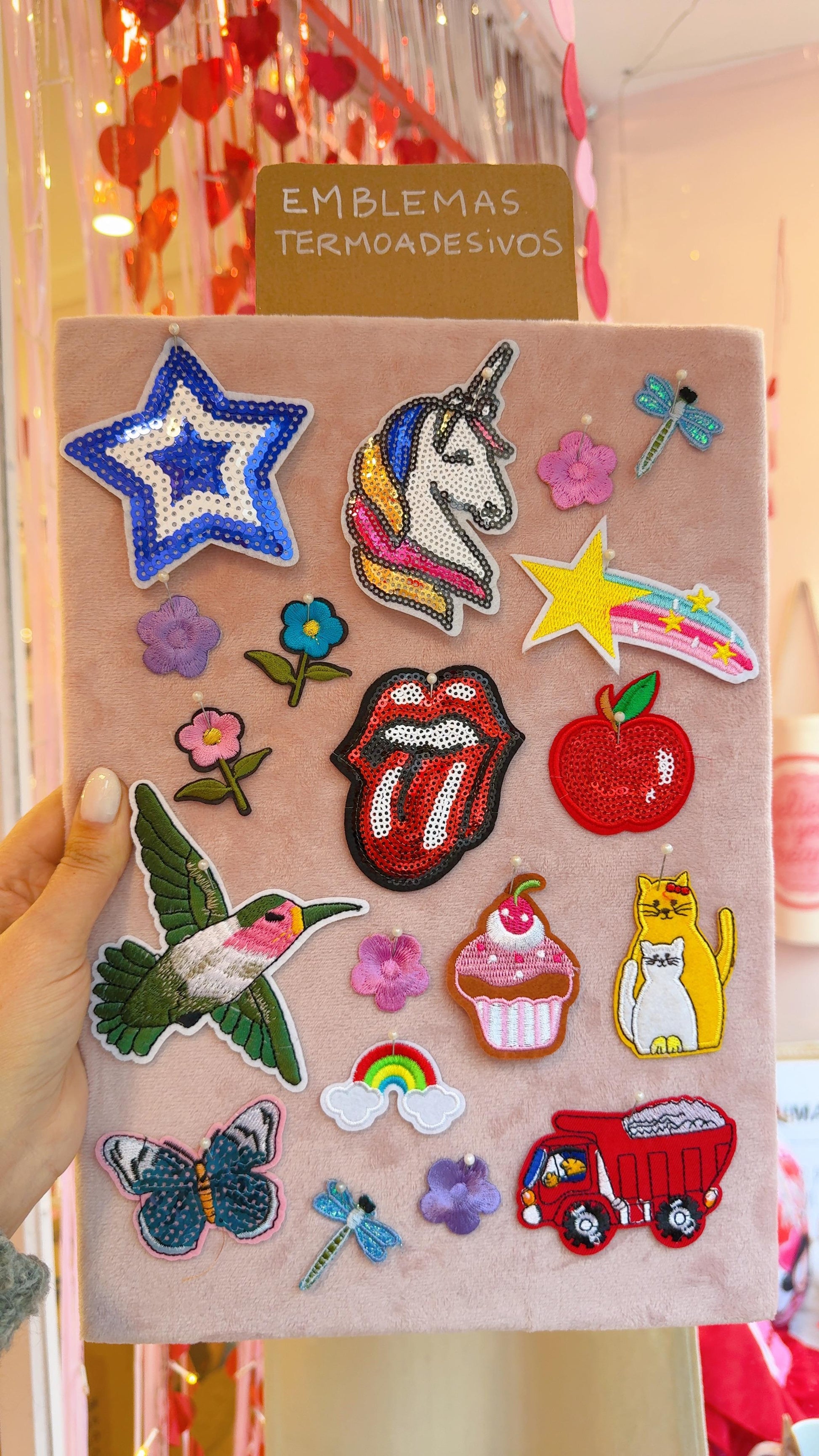 Existem em diferentes tamanhos, formatos e materiais, ideais tanto para decorar como para tapar pequenos buracos em casacos, calças, mochilas ou outras peças do dia a dia.