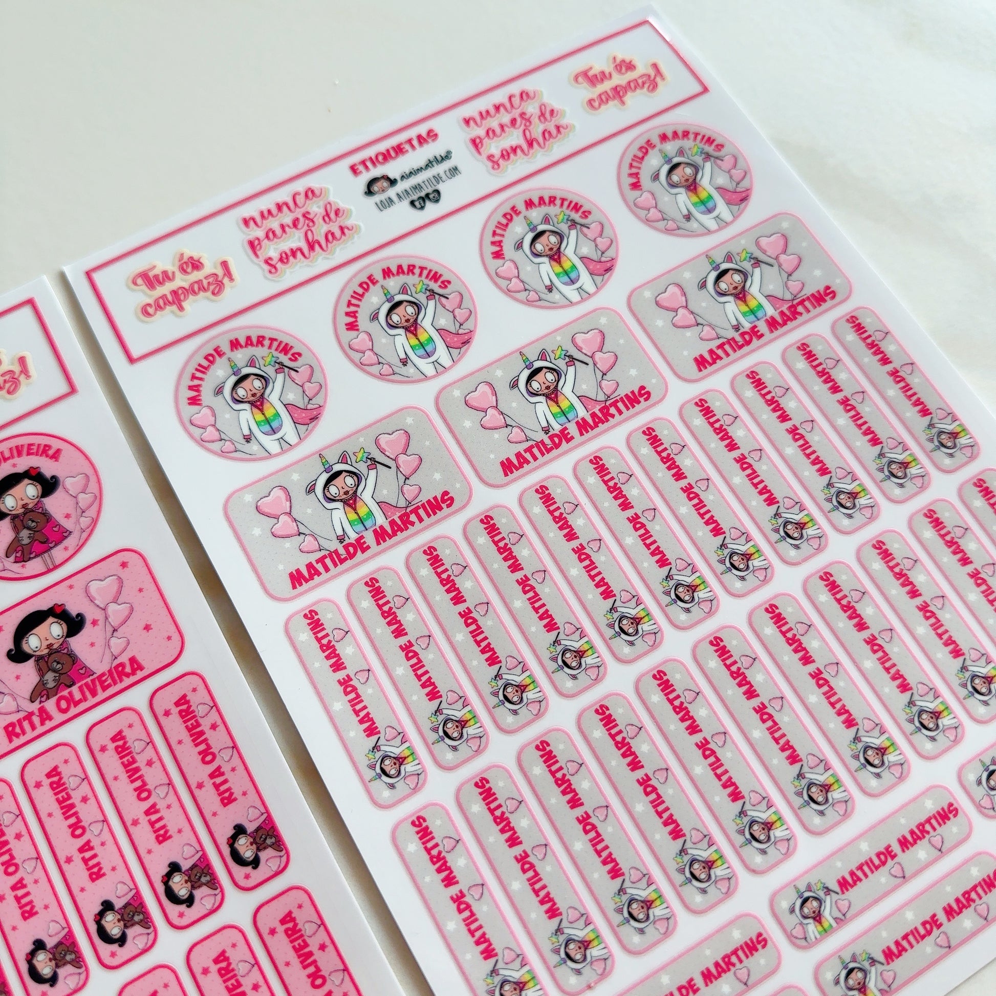Etiquetas autocolantes apenas para objectos rígidos, escolares ou do dia a dia, o importante é dar asas à imaginação!